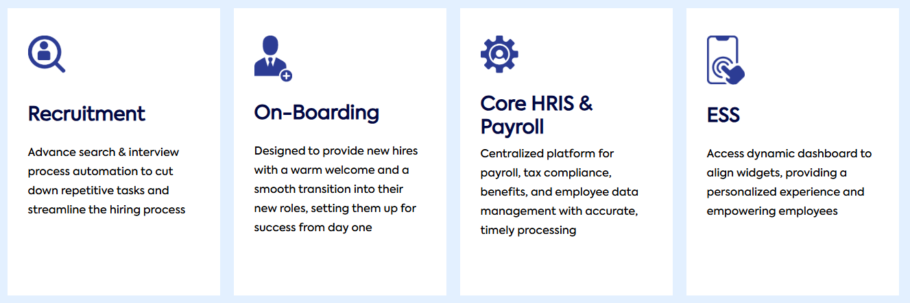 • Module 3 Core HRIS & Payroll: Centralized platform for payroll, tax compliance, benefits, and employee data management with accurate, timely processing